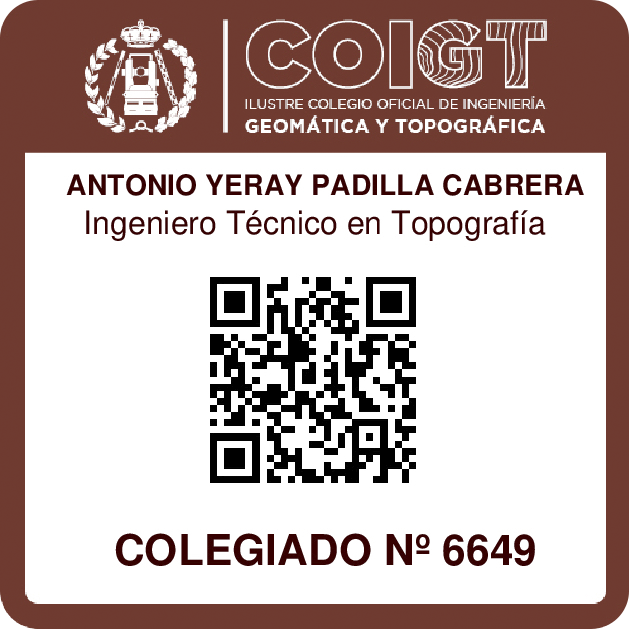 Ingeniero Técnico en Topografía por la Universidad de Las Palmas de Gran Canaria; colegiado ejerciente y miembro profesional de la Asociación Española de Geómetras Expertos. Más de 15 años de experiencia en diferentes campos de la topografía, desarrollándose profesionalmente, además de España, en África y Suramérica.